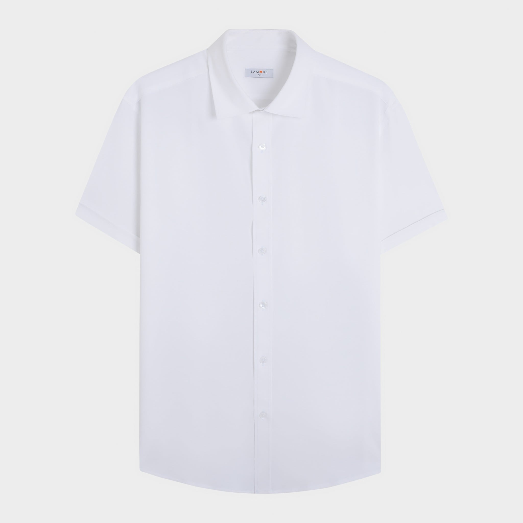 - Áo sơ mi trắng ngắn tay với phom dáng Slim Fit ôm vừa, giúp tôn dáng người mặc.