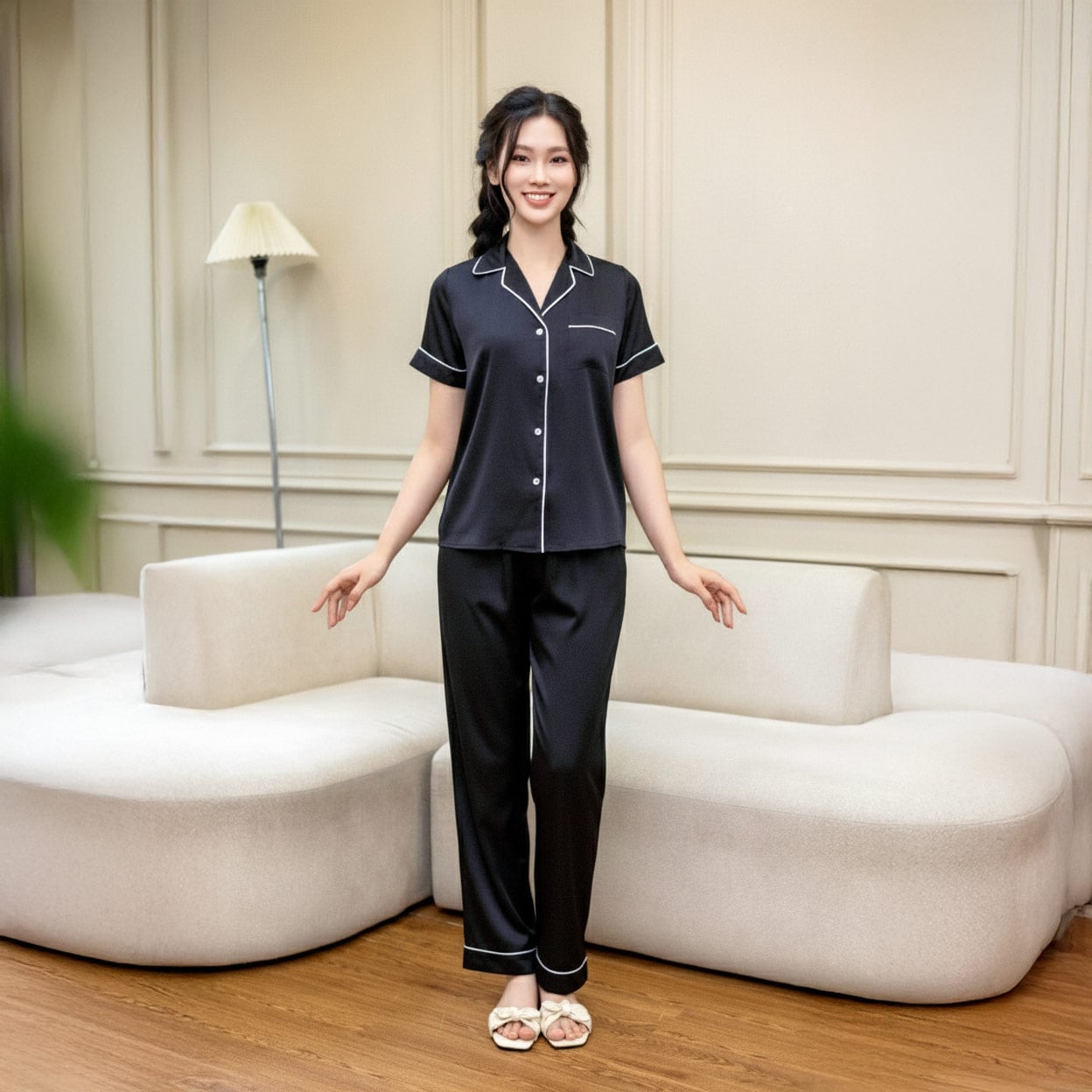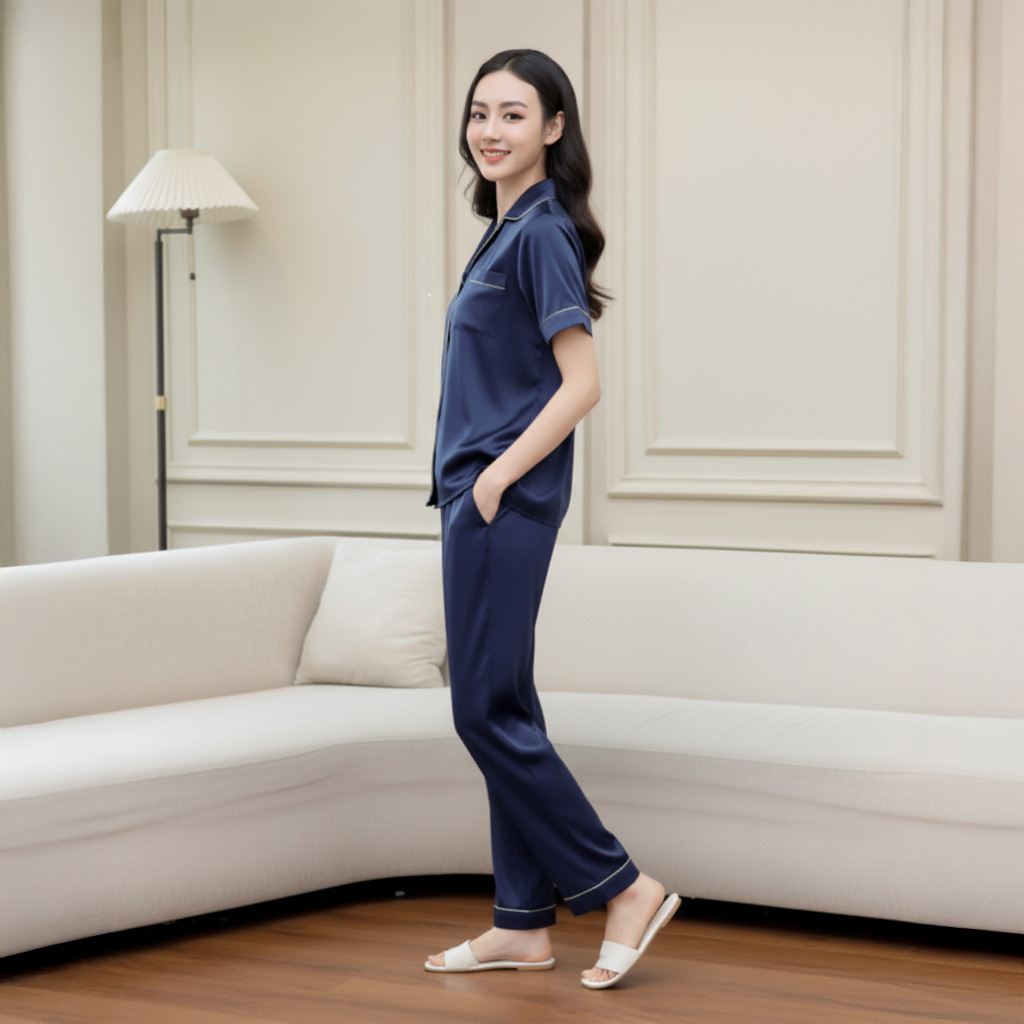 - Tên sản phẩm: Bộ đồ nữ lụa latin - Thiết kế áo tay cộc quần dài LST032AS0