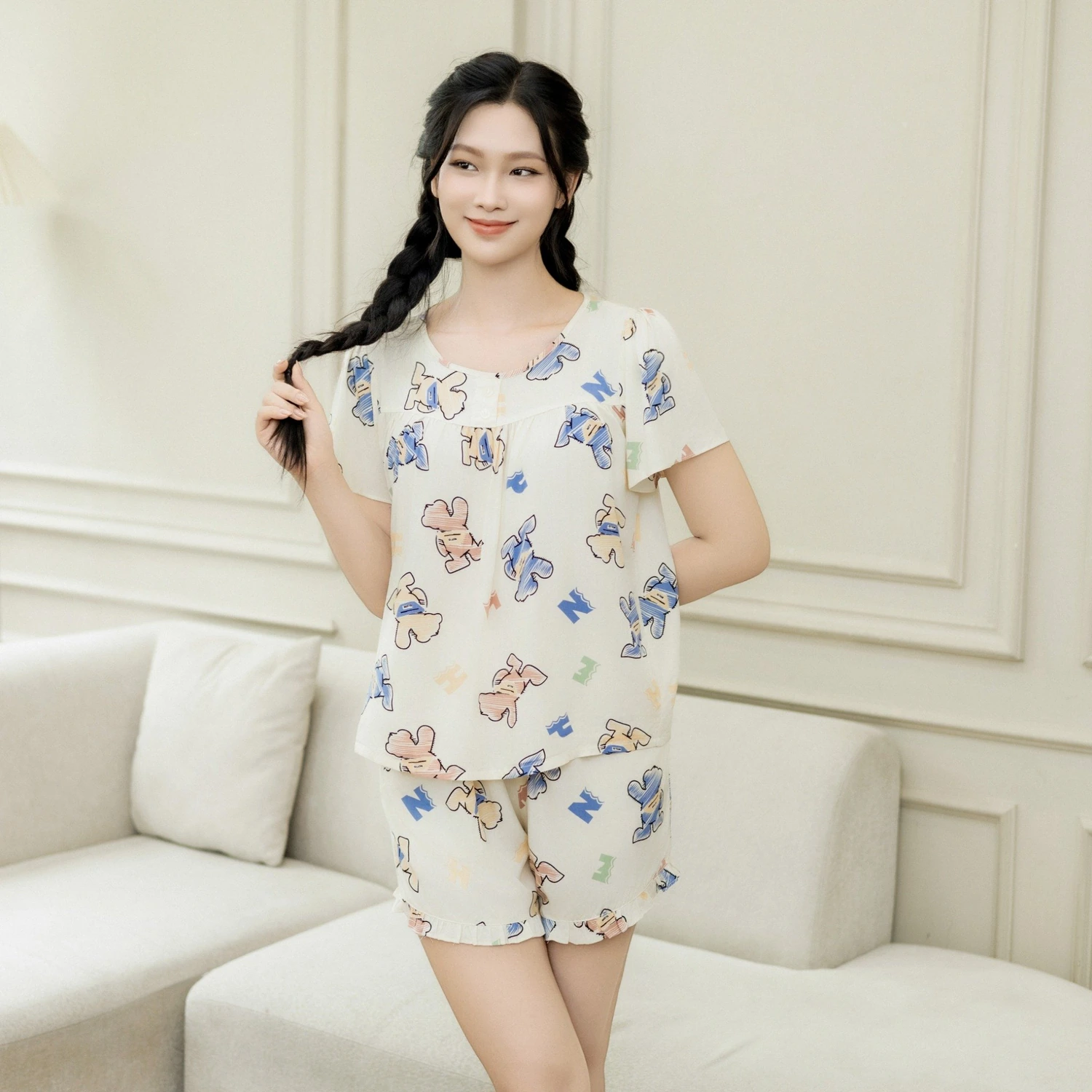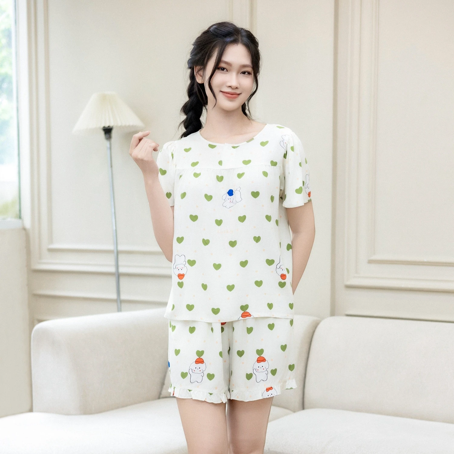 - Tên sản phẩm: Bộ Đồ Mùa Hè Nữ Áo Tay Cộc Quần Đùi Lamode LST028AS0