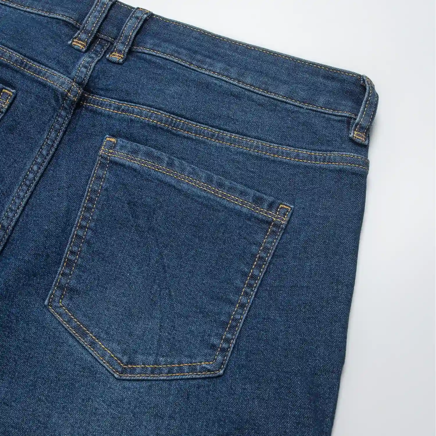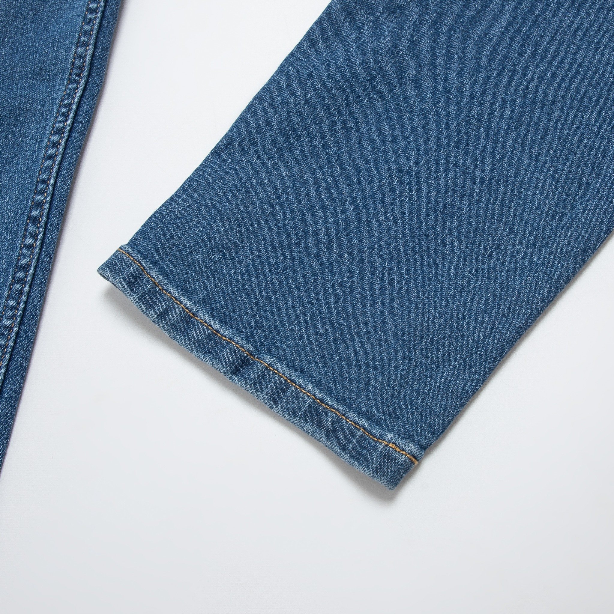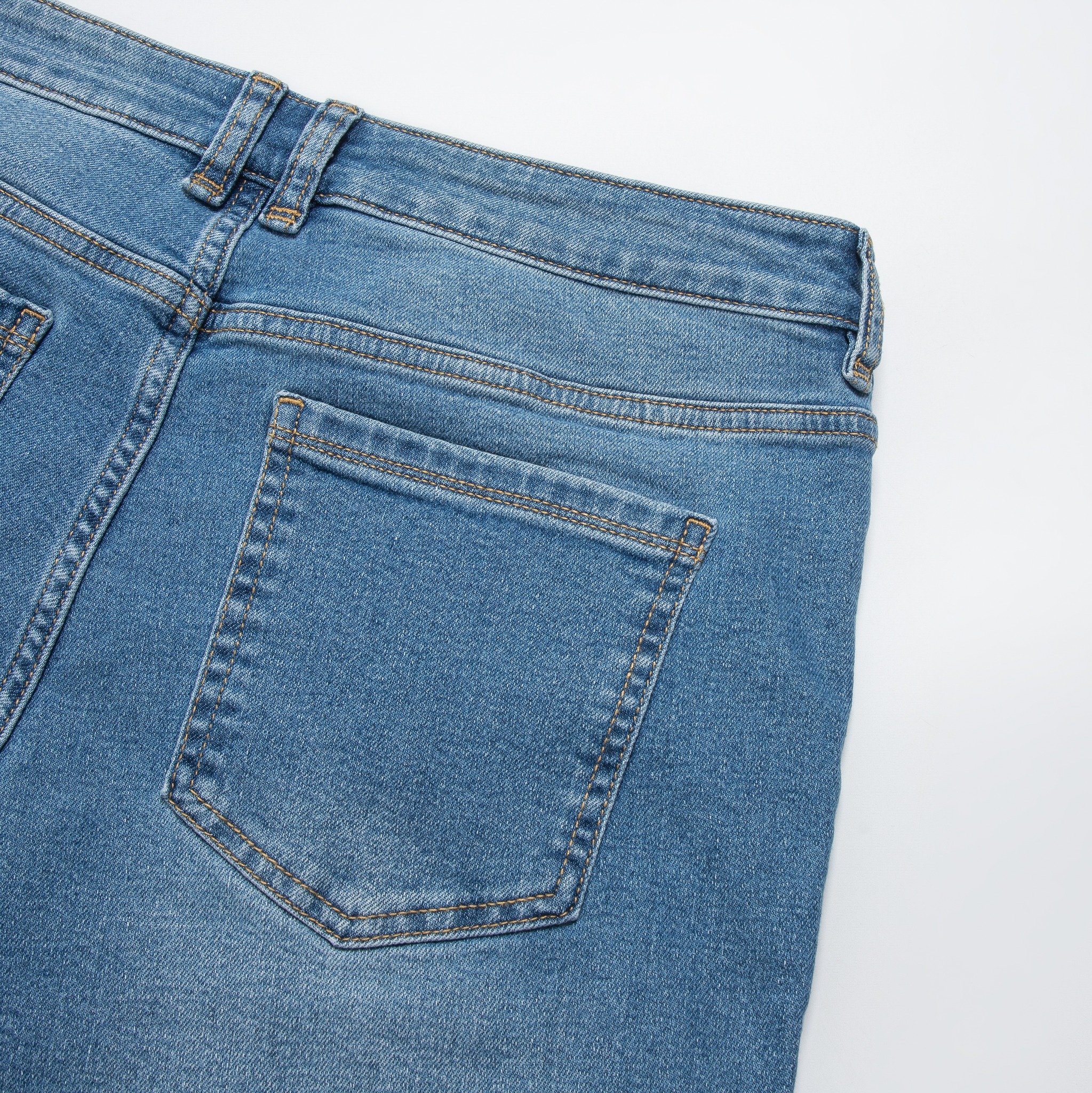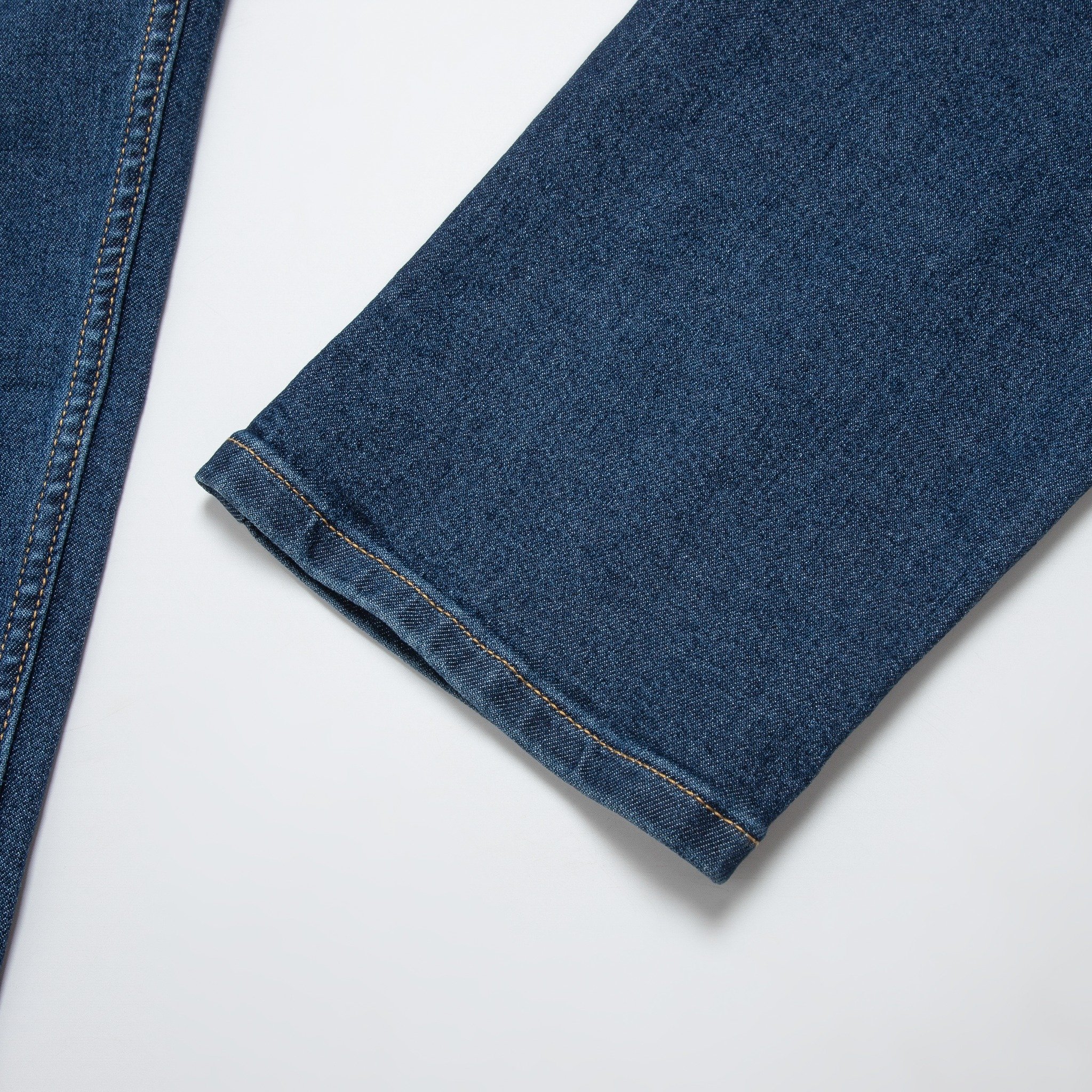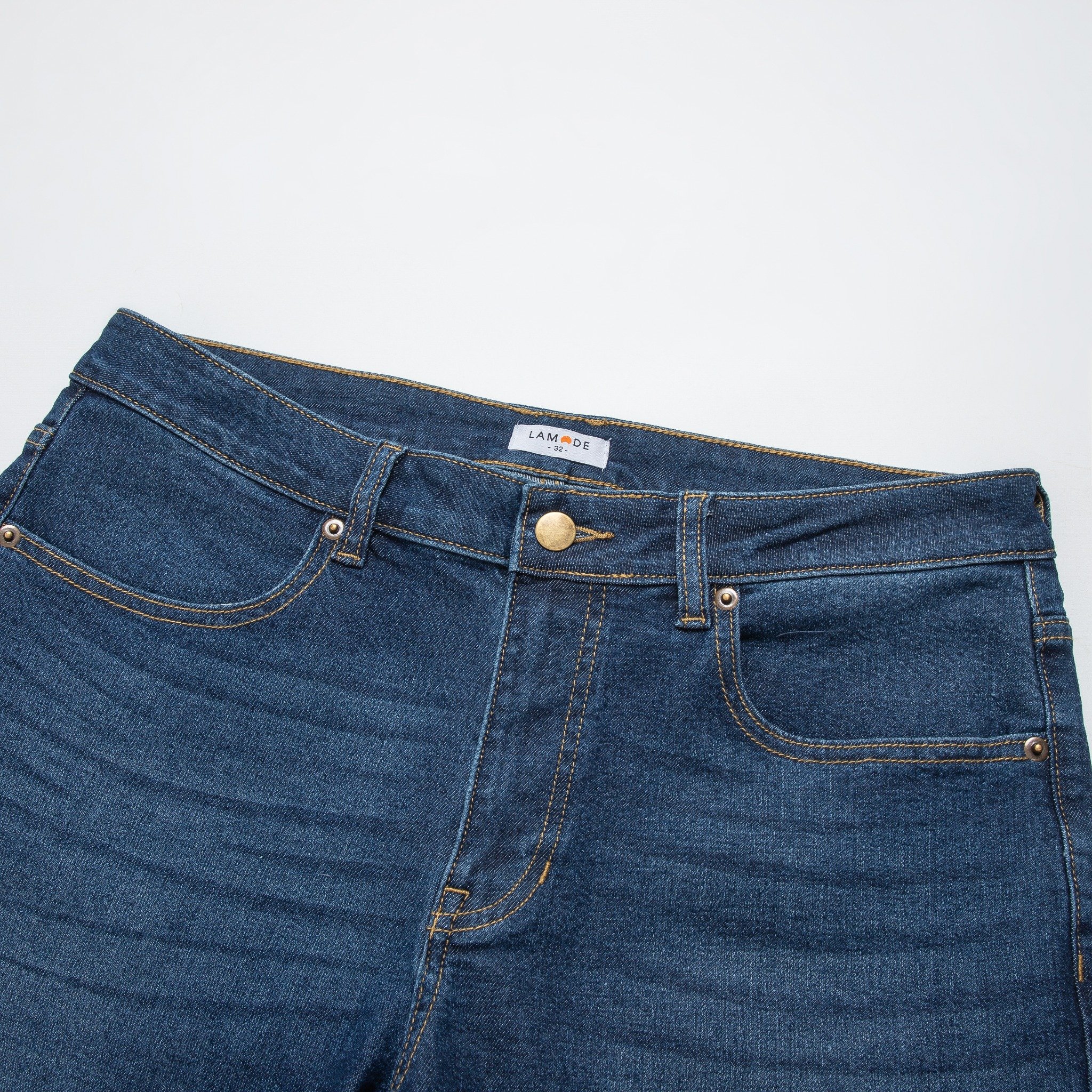 - Quần jean xanh đậm có độ ôm vừa vặn, đem lại cảm giác thoải mái khi mặc