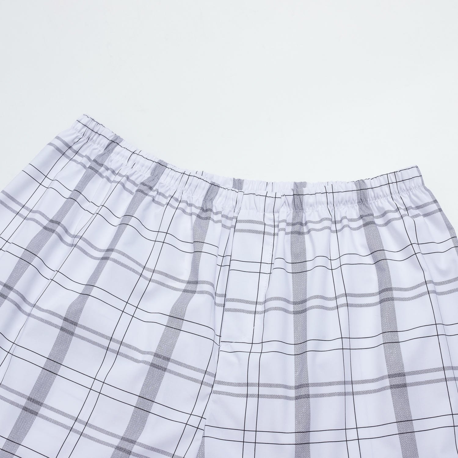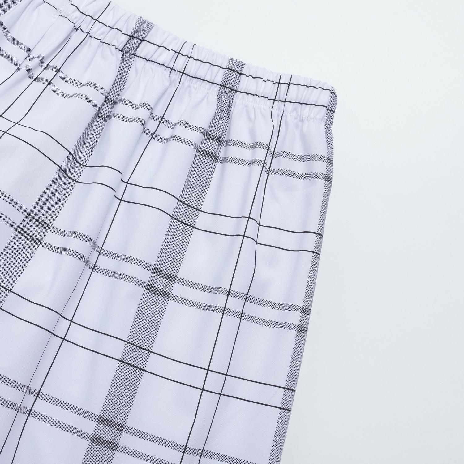 - Quần cạp chun, thiết kế đơn giản và họa tiết kẻ nam tính.